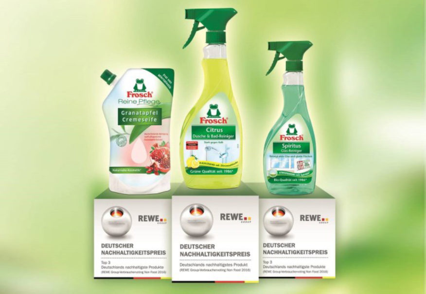Im REWE Group-Verbrauchervoting hat Werner & Mertz 2016 gleich die ersten drei Plätze belegt und ist dafür mit dem deutschen Nachhaltigkeitspreis in der Kategorie „Deutschlands nachhaltigste Produkte“ im Bereich Non Food ausgezeichnet worden. In einer bundesweiten Umfrage wählten die Verbraucher die Produkte der Marke Frosch zu den Top Drei der nachhaltigsten Produkte.